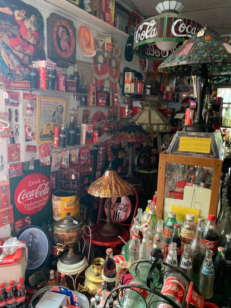 Victorian furniture, glass bottles, lamps, clocks English china, majolica, oil on canvas paintings, tin toys, architectural items, and over 18,000 items of coca-cola memorabilia for sale .